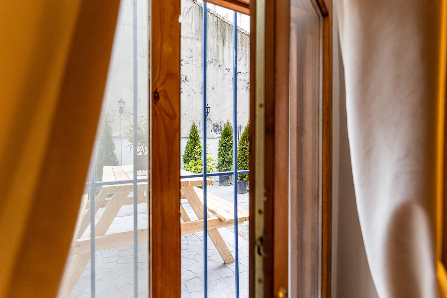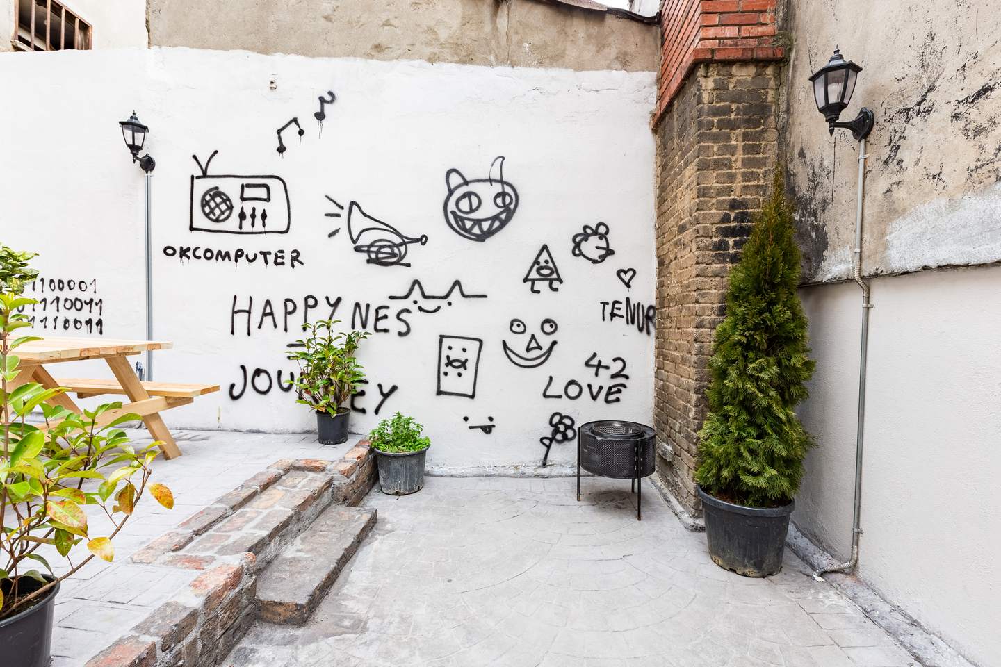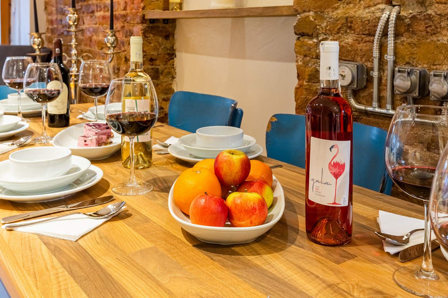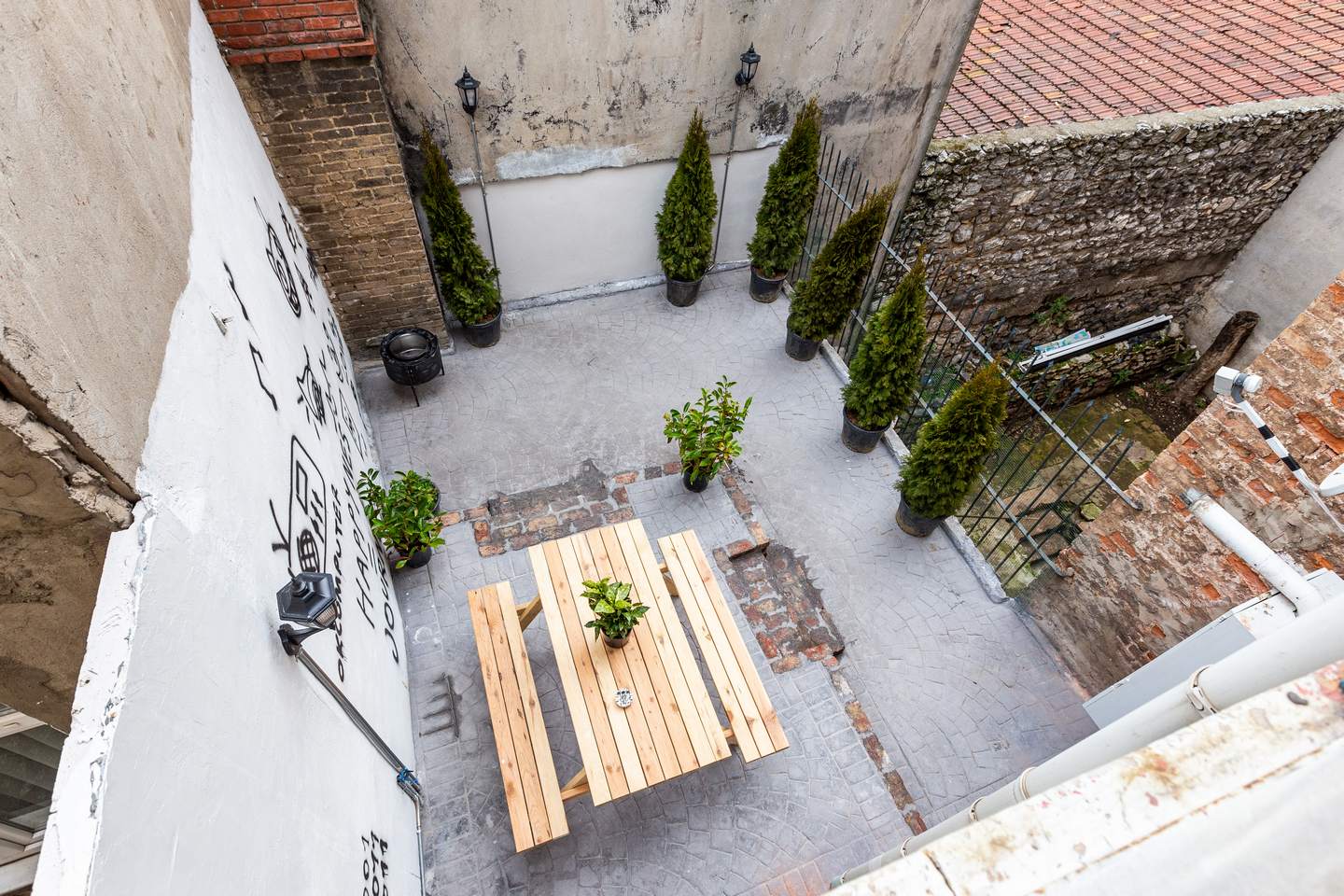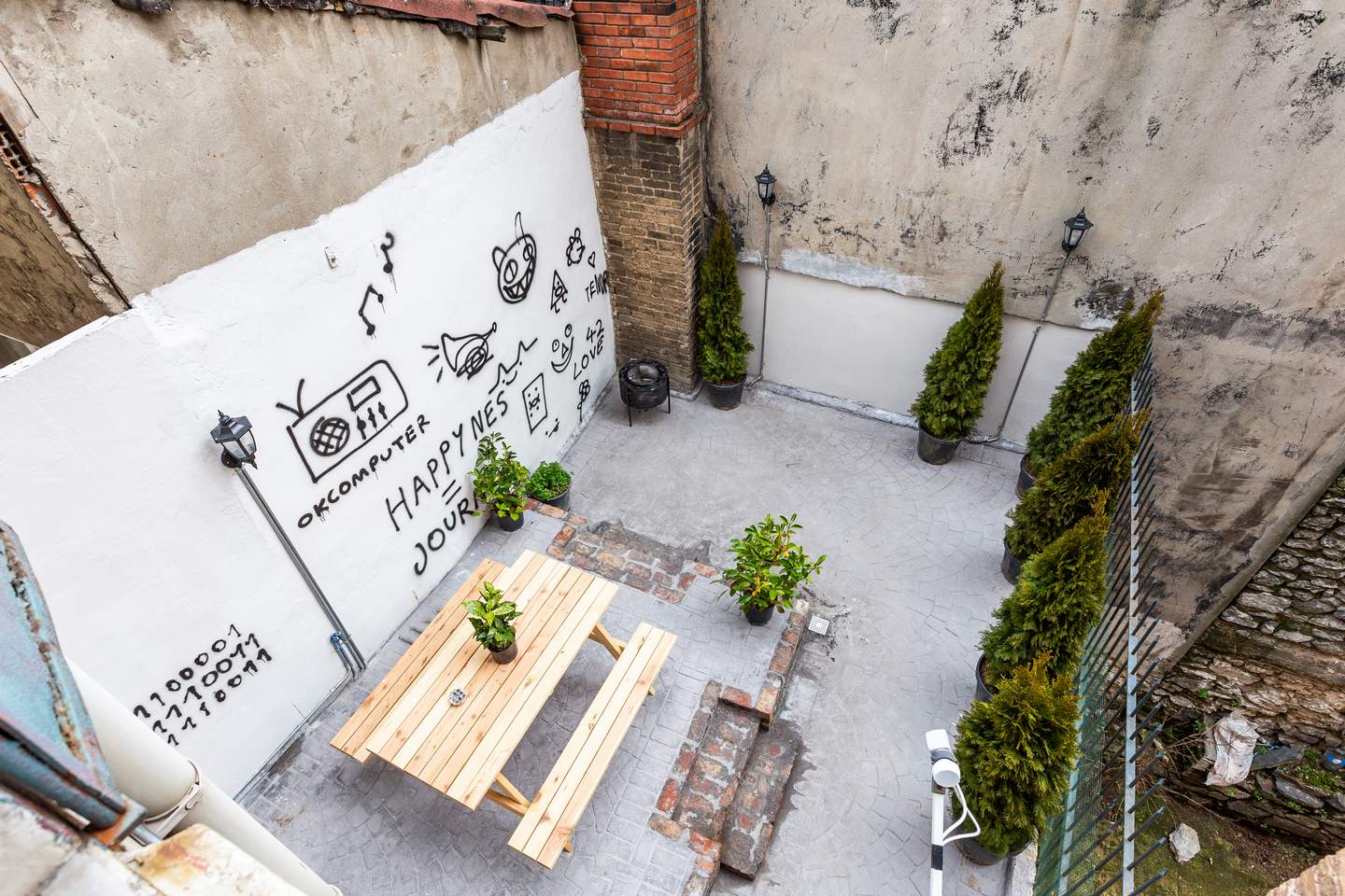 There is a nice terrace with a fire-pit and an exquisite wooden table on the first floor.