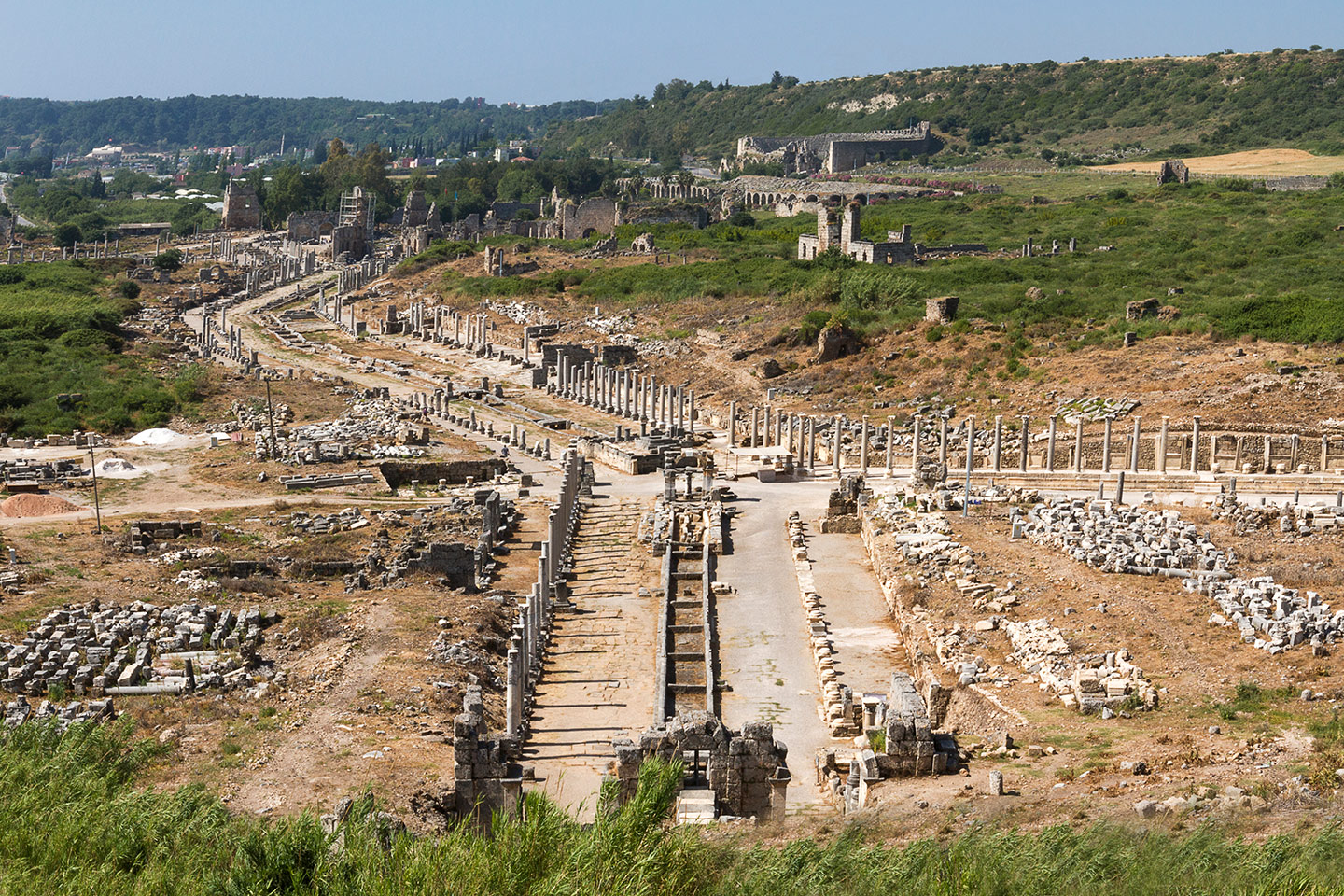 Ruins of the Roman city of Perge in Antalya, Turkey.