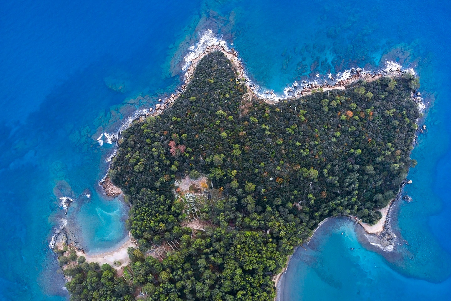 Mediterranean coast from high angle in Olympos, Antalya, Turkey.