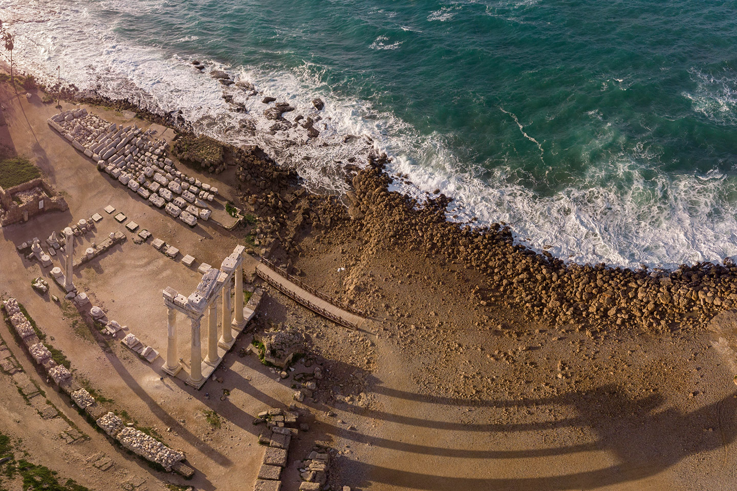 Temple of Apollo at the ancient city of Side in Antalya region on the Mediterranean coast of Turkey